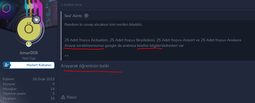 Bak sana ne buldum kimler destek veriyor görmüş olursun hem 😉Yeni üye oldum, ama gördüğüm kadarıyla bir kaç sayfa okuyunca al sat yapanlar olduğunu hissettim, forumun devamlılığı açısından uzun dönemde zarar verdiğini düşünüyorum, ama forumda serbest ise o ayrı.. 😉