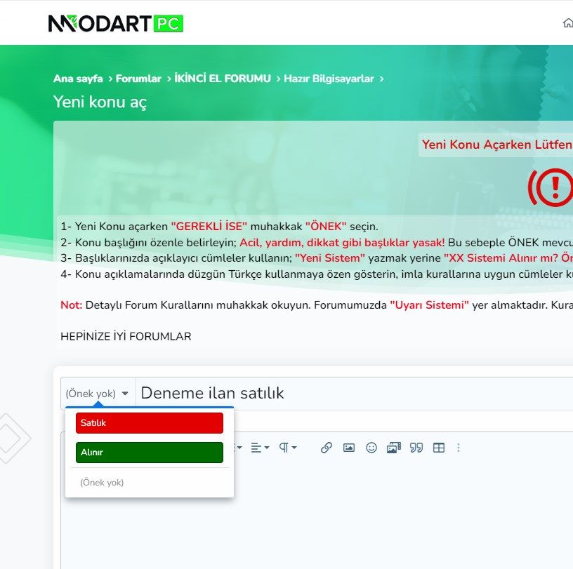 Arkadaşlar İkinci El Forumu için bir ekleme ve zorunluluk getirdik.