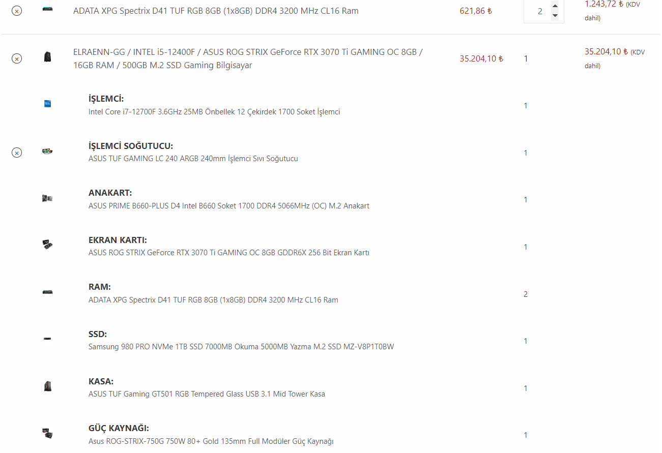 öyle tek tek toplarsan 32 kayme olur tabi 😂😂 Hazır kampanyalı sistem alıp işlemciyi ayrıca satın alsan yükseltsen daha ucuza gelir :)