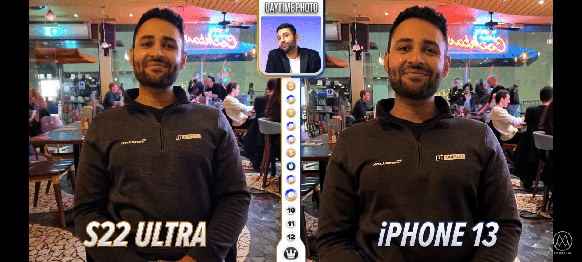 Kamera olarak iPhone 13 çok daha gerçekçi renkler üzerine odaklanırken S22 Ultra doğaldan uzak ama insan gözüne daha iyi gelen renkler veriyor. Tabii bunun bir eksiside çok ışık patlarsa sensör onu daha fazla patlatıp o kısımda hiç bir şey görünmemesine sebep oluyor.